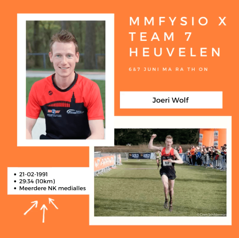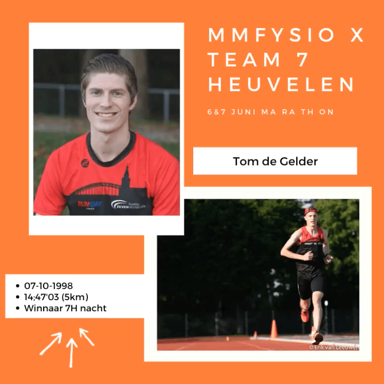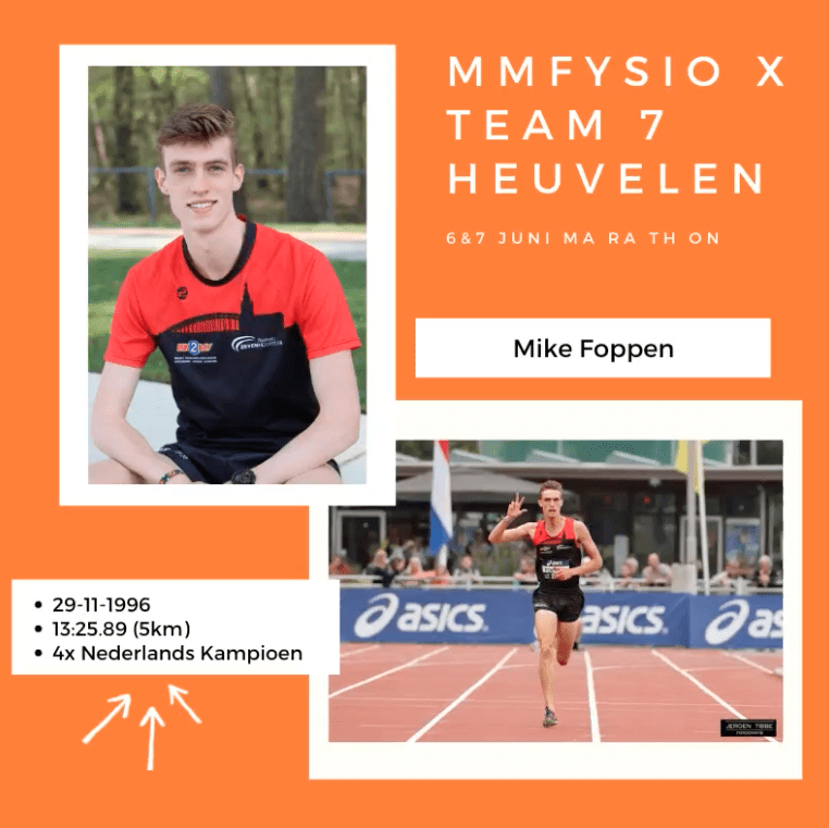 MMfysio heeft zijn eigen topteam opgesteld met 4 atleten van Team Zevenheuvelen. Joeri Wolf, Tom de Gelder, Abdirahman Mohamed en Mike Foppen zullen de strijd aan gaan met meer dan 80.000 andere virtuele deelnemers. Hieronder stellen wij de atleten voor. Succes mannen!